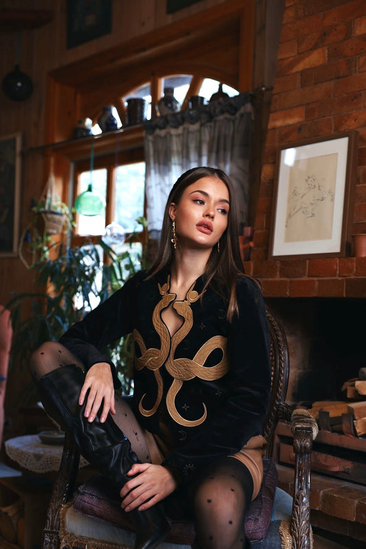 The Golden Nehebkau | Embroidered Velvet Jacket