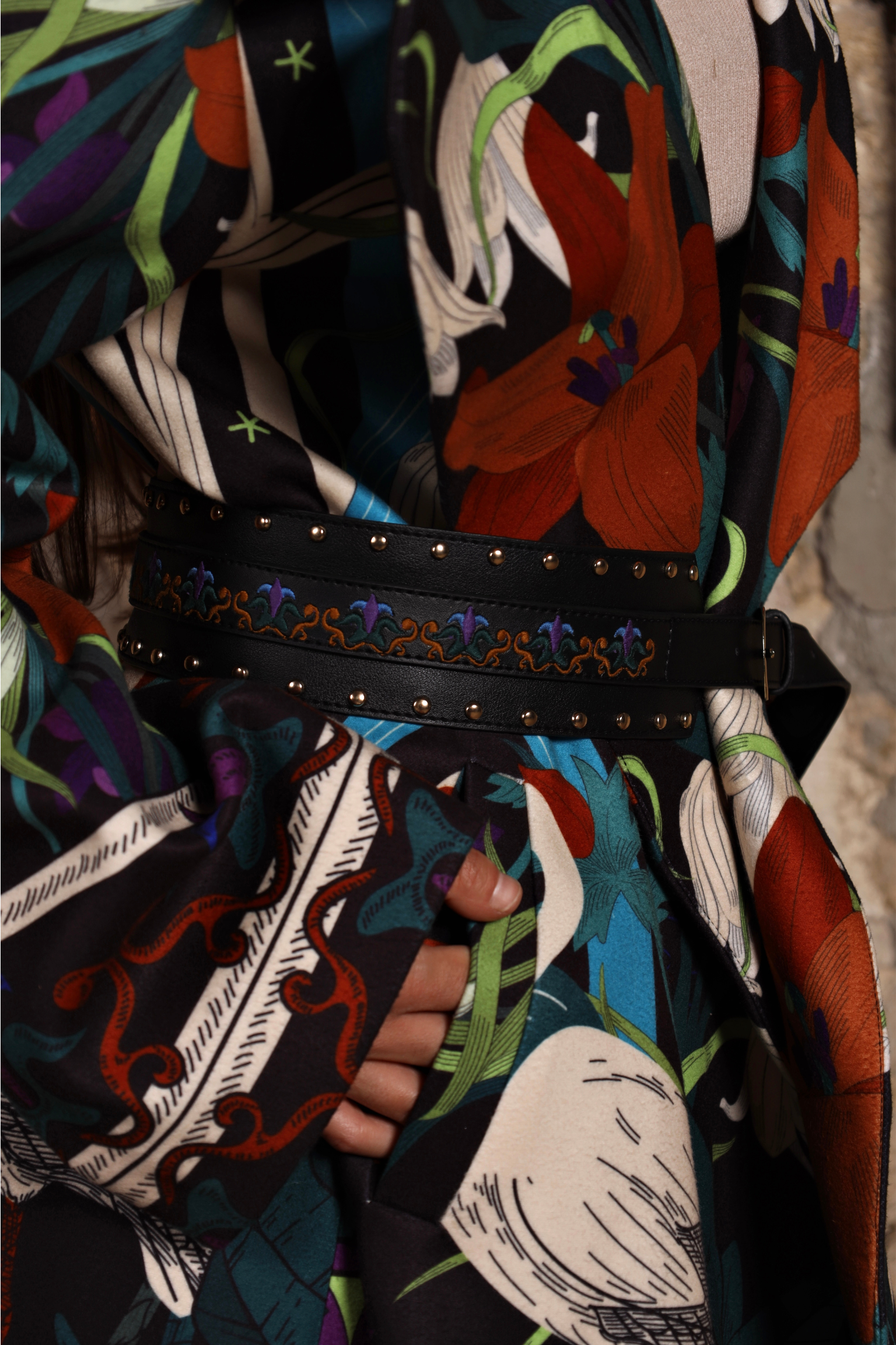 - Closure: Leather belt + internal fastening.