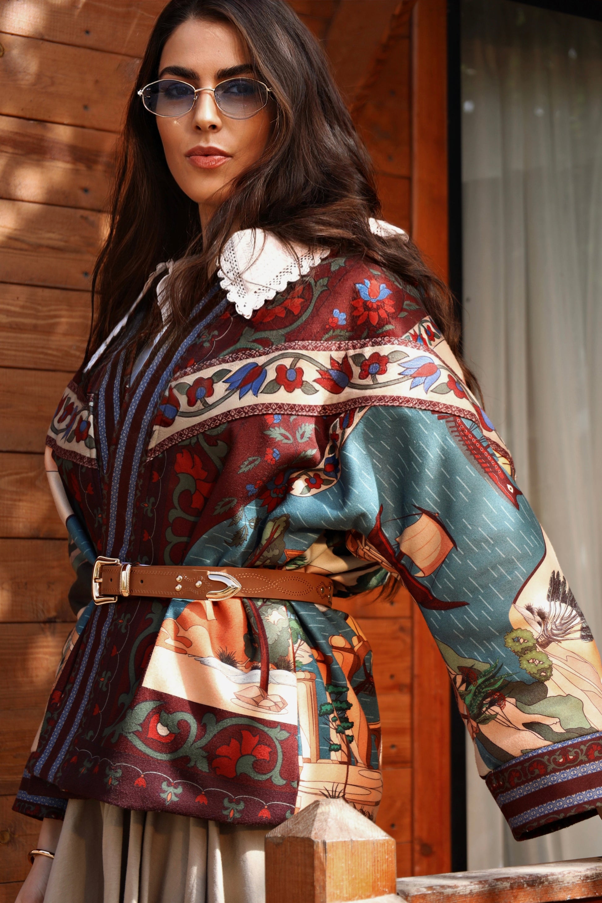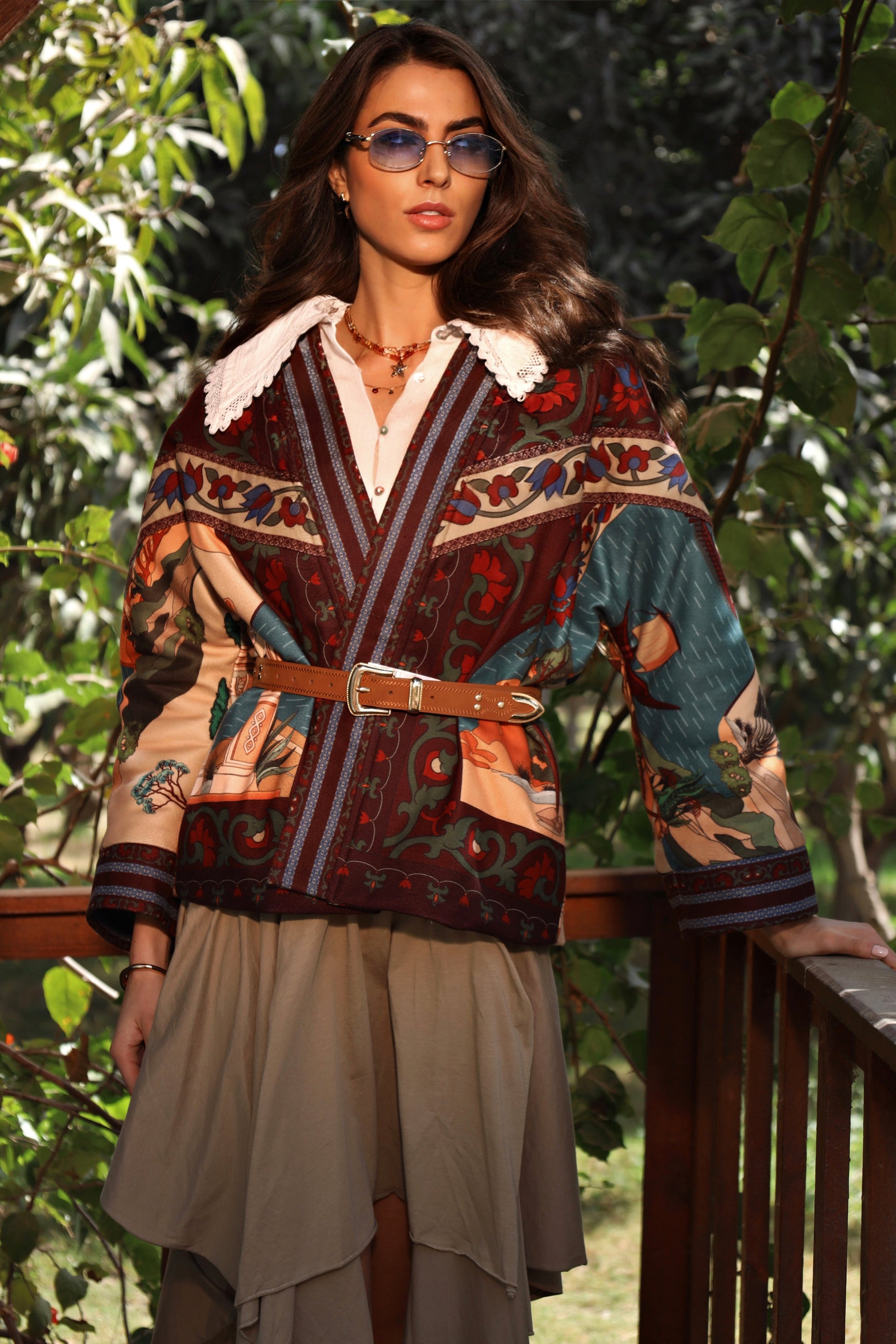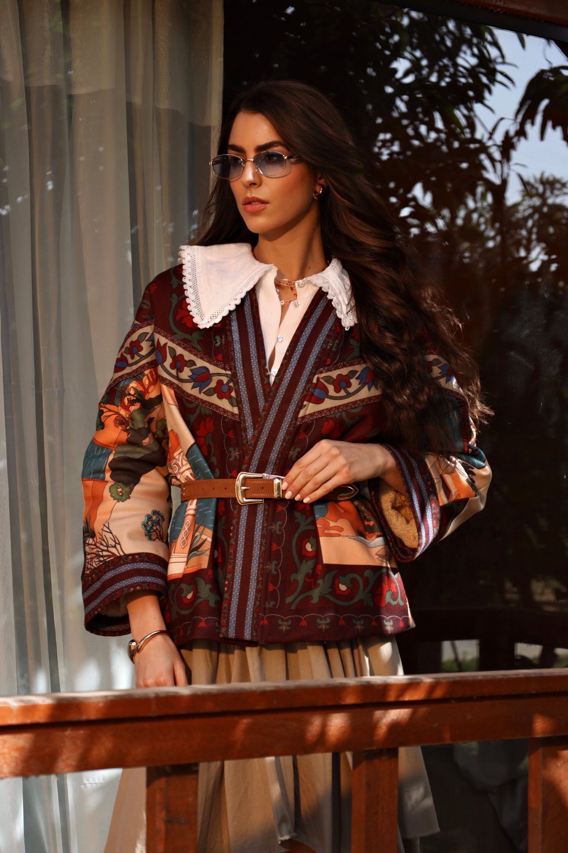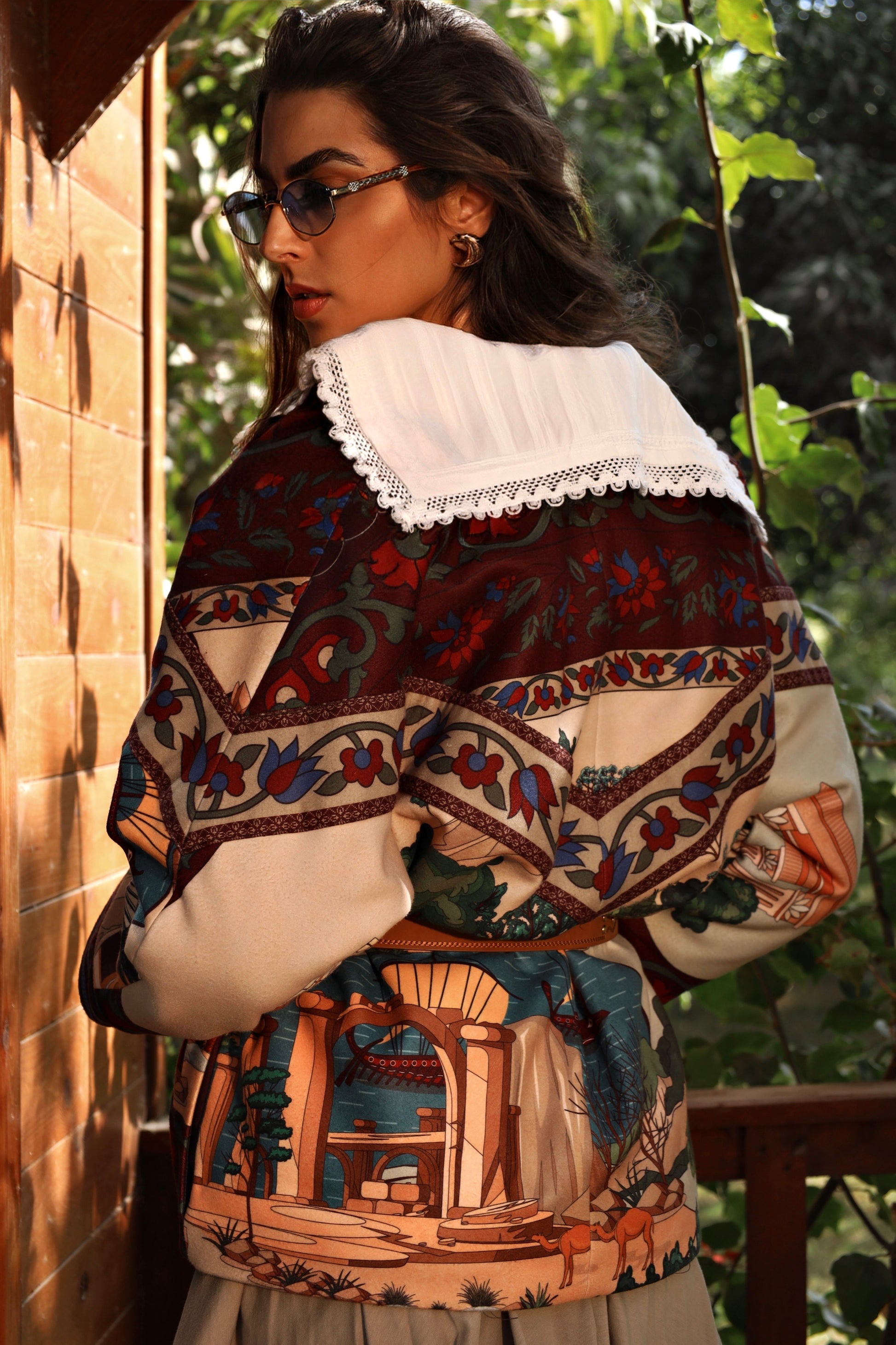 A statement piece woven with history and warmth, the Nile of Eden Jacket is crafted from premium wool baize, chosen for its structure, durability, and soft yet substantial feel. Inside, a premium fur lining envelops the body, offering natural insulation and a sense of cocooned comfort—echoing the sanctuary of ancient garden walls. Intricate, story-rich prints draw inspiration from Nile landscapes, temple murals, and sacred flora, while the belted silhouette creates a refined balance between strength and femininity. Designed for both warmth and presence, this jacket transitions effortlessly from day to evening, from modern cityscapes to timeless escapes. Nile of Eden is not just worn—it is inhabited. A modern heirloom for women who move through the world with quiet power and timeless grace.