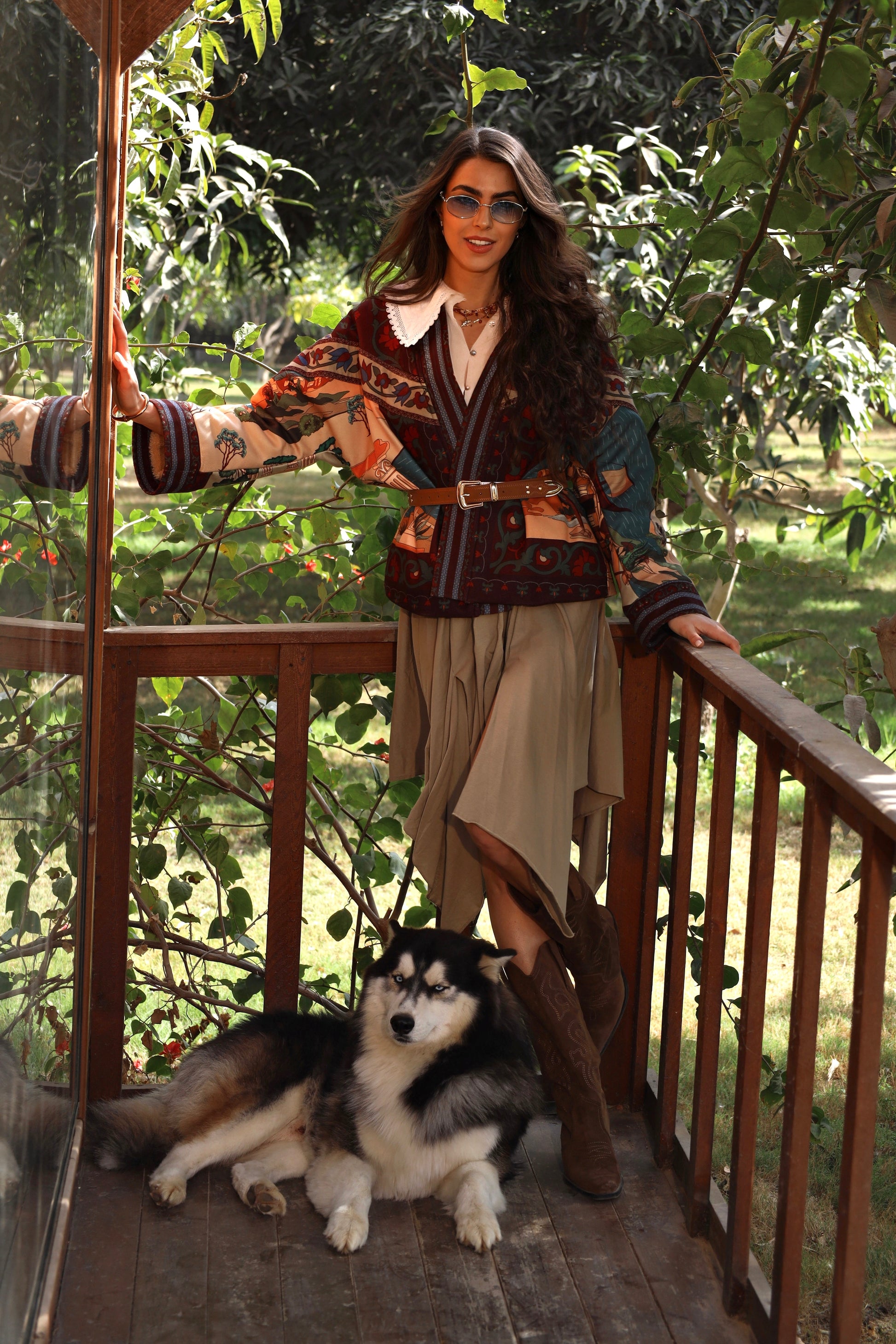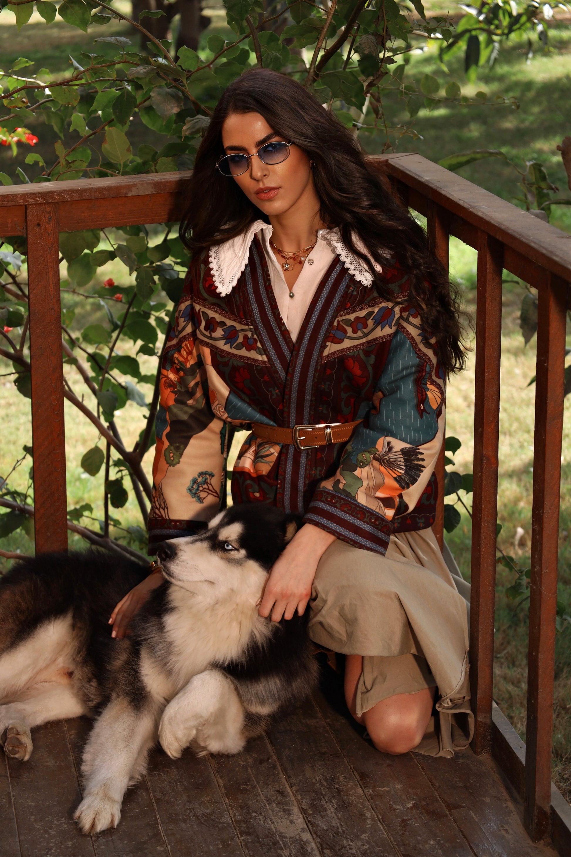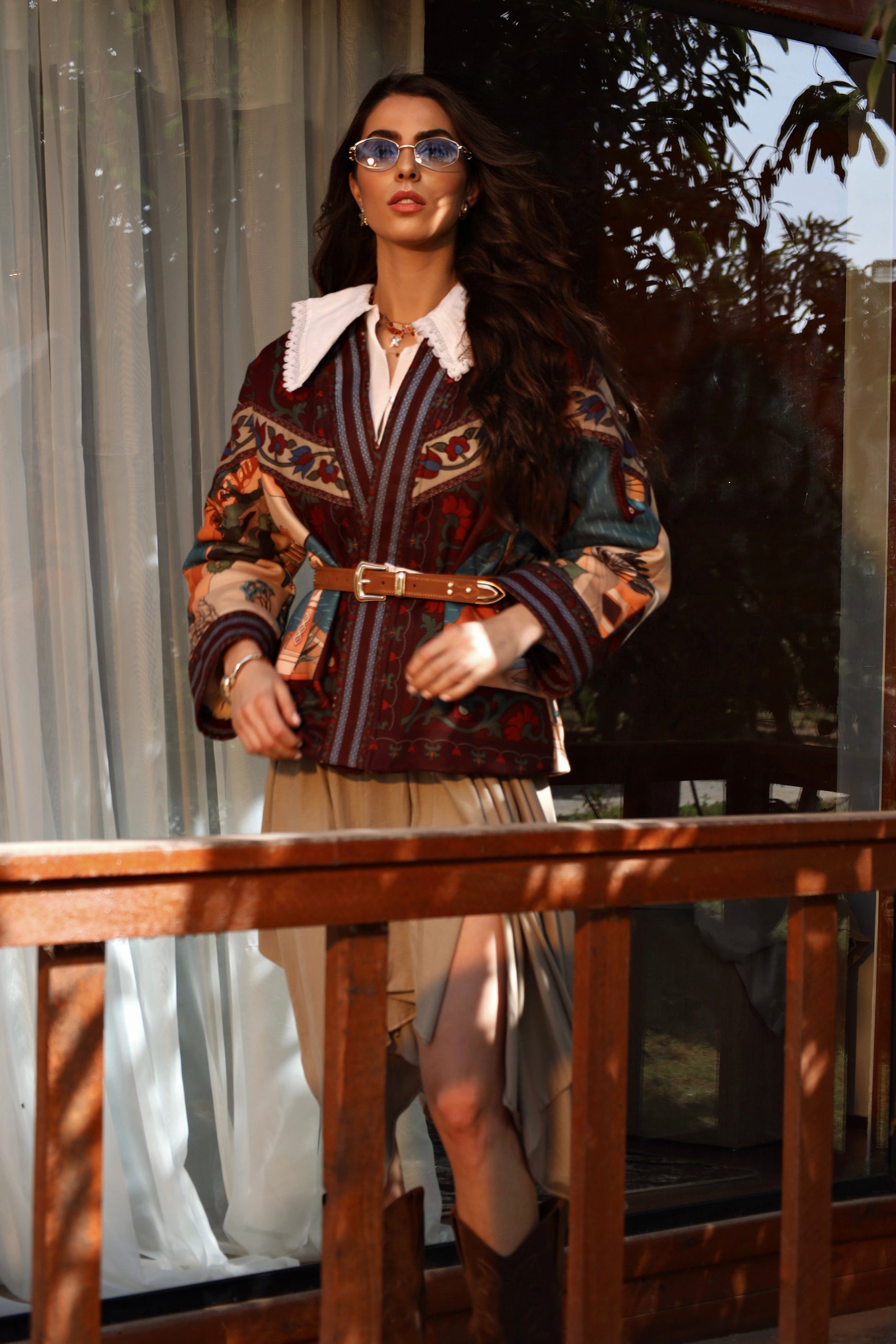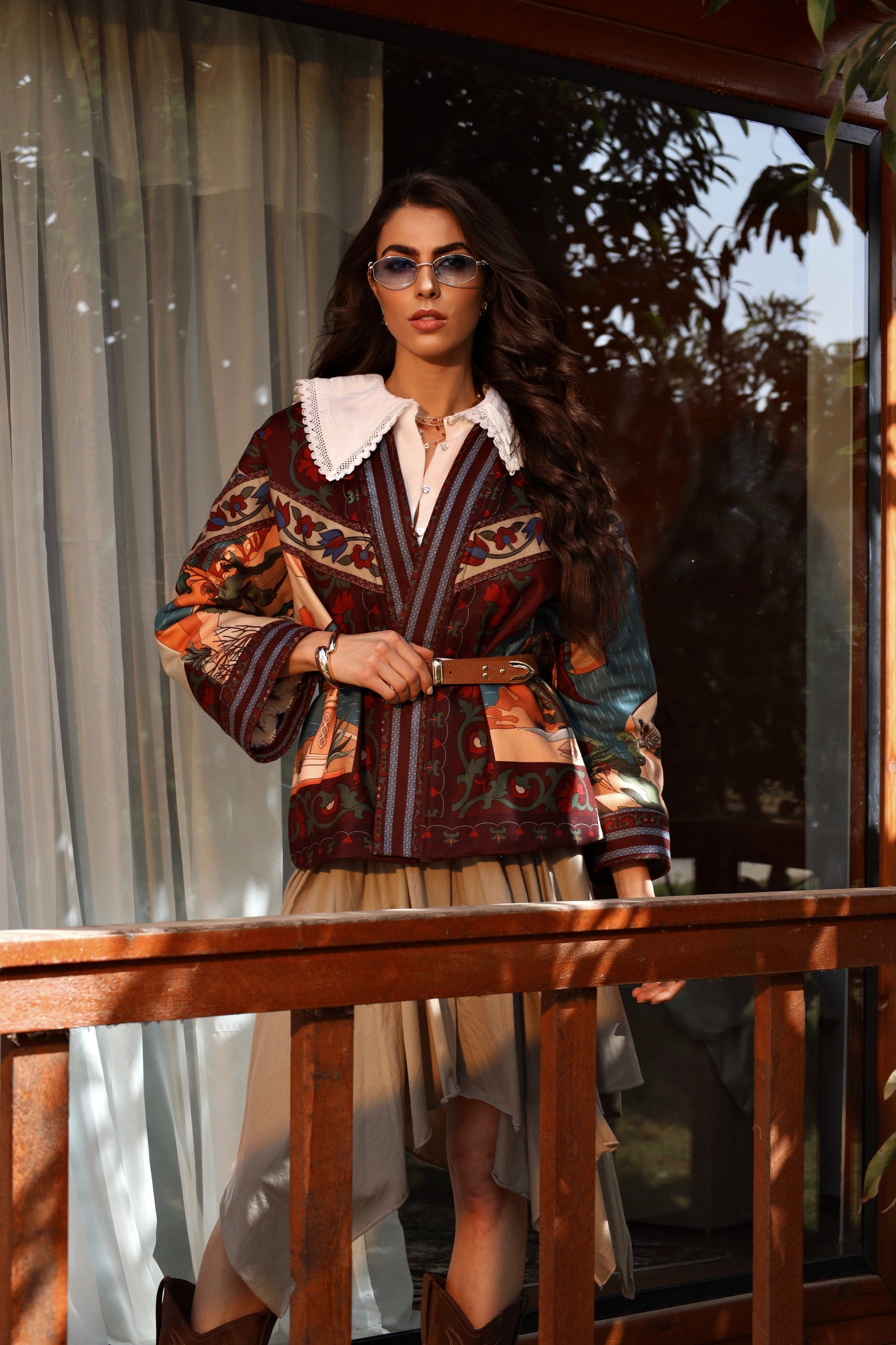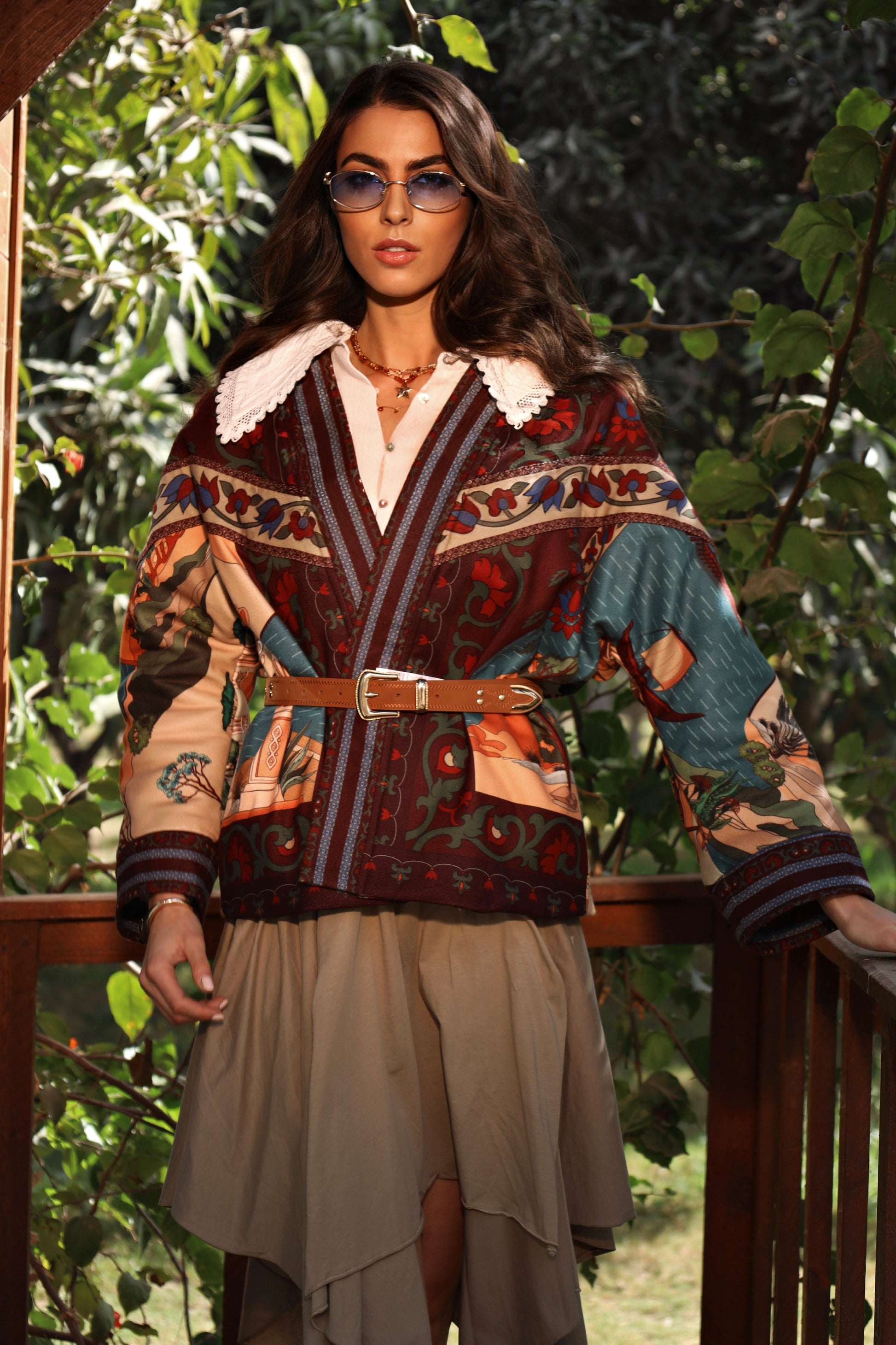 A statement piece woven with history and warmth, the Nile of Eden Jacket is crafted from premium wool baize, chosen for its structure, durability, and soft yet substantial feel. Inside, a premium fur lining envelops the body, offering natural insulation and a sense of cocooned comfort—echoing the sanctuary of ancient garden walls. Intricate, story-rich prints draw inspiration from Nile landscapes, temple murals, and sacred flora, while the belted silhouette creates a refined balance between strength and femininity. Designed for both warmth and presence, this jacket transitions effortlessly from day to evening, from modern cityscapes to timeless escapes. Nile of Eden is not just worn—it is inhabited. A modern heirloom for women who move through the world with quiet power and timeless grace.