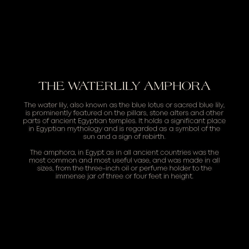 Story: Symbolizing the sun and rebirth, the water lily combines with the versatile amphora vase, an essential in ancient Egypt. Together, they bring a touch of mythology and practicality to your ensemble.